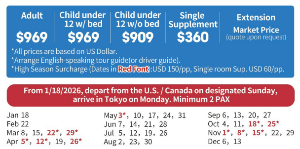 Special adding spots in Autumn(Departure date 18th Oct-15th Nov): Yoyogi Park, Rikugien Garden