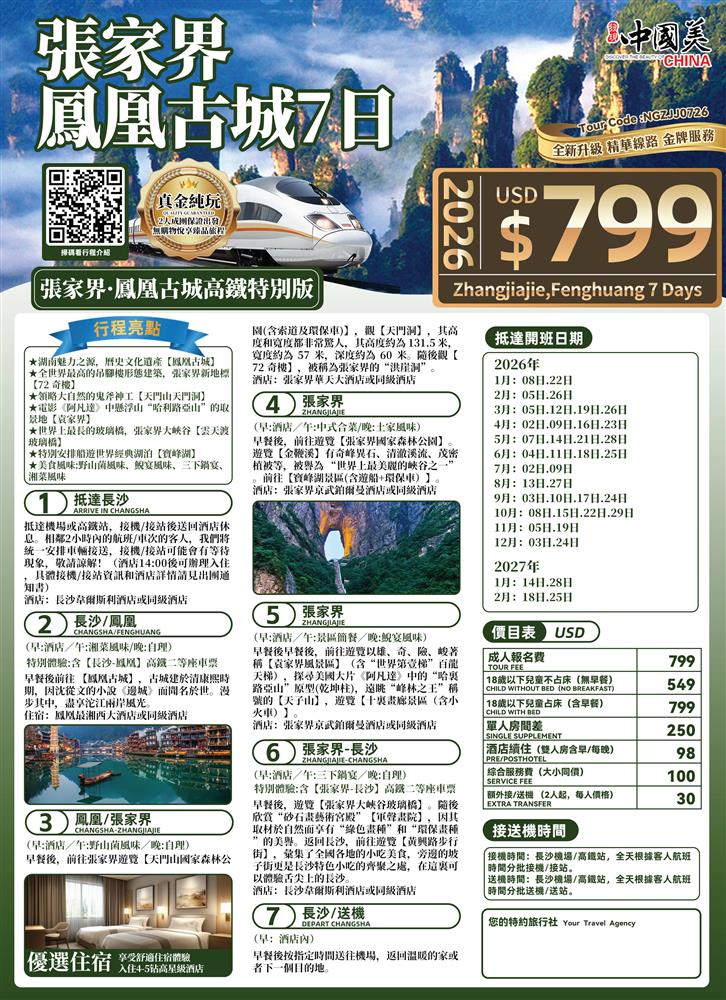單人房差、酒店續住價格、額外接送收費價格:請參考各線路網站標注以及廣告單頁。