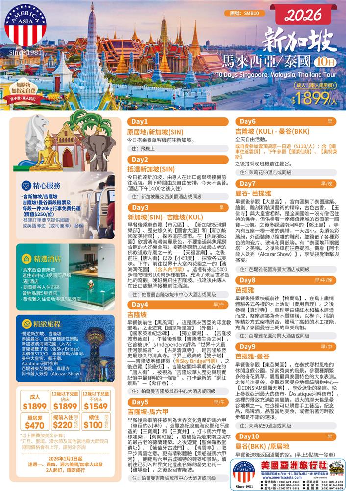 新加坡, 馬來西亞, 泰國10日之旅 (2026)