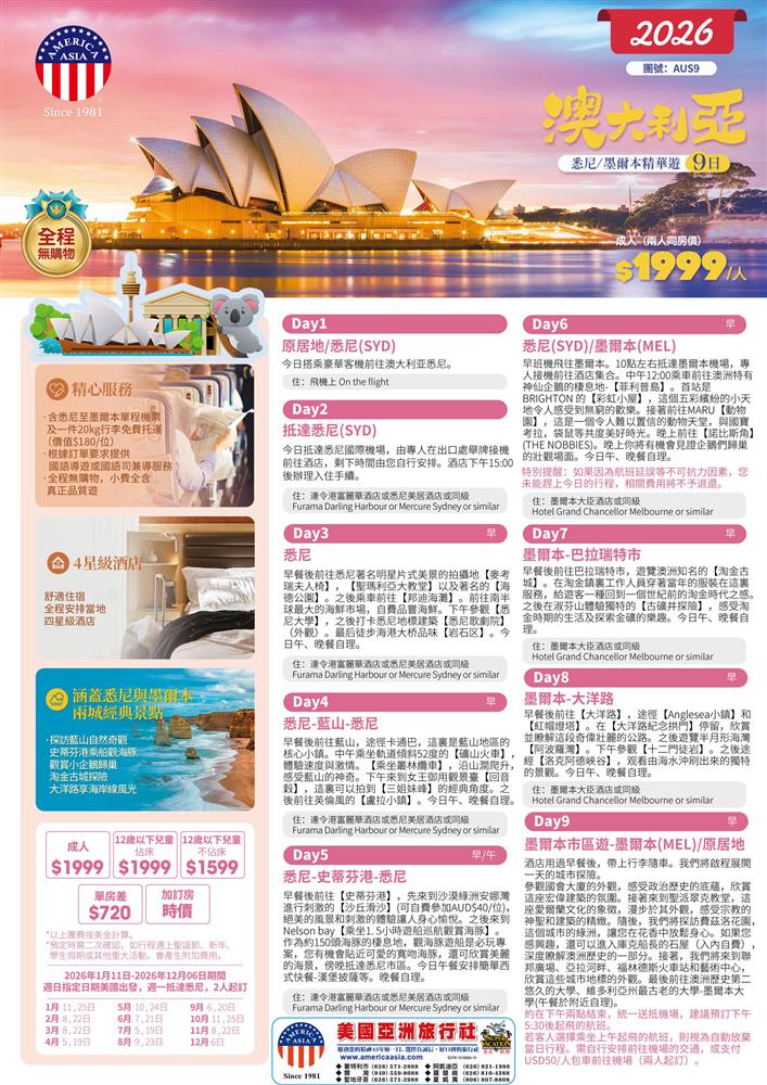 * 出發前45天以上,每人扣除USD$400。