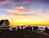 下午酒店集合(柯納 3:00pm),坐上專用四輪驅動旅遊車出發,馳騁在夏威夷大島著名的馬鞍路上,穿過兩座休眠大火山而聞名,景色優美。穿過一片熱帶雨林後,截然來到一片新土地,萬物蓄勢待長,如果在天空上俯瞰,恍如月球表面。一路穿過好幾個休眠火山孔,在海拔2800米,Onizuka遊客中心稍作休息,讓身體逐漸適應高海拔,並穿上本公司提供的禦寒外套及手套。遊客中心出發,這段崎嶇山路只有四輪驅動車能通過,在砂石路上行駛半小時左右,日落前30分鐘抵達莫納凱亞最高峰,夏威夷海拔最高的山頂。這座美麗的山峰經常鋪著一片白雪,遙望山上分佈著13座天文台,跟著導遊到觀景台,雲海上的夕陽在等待著你,一生難得一見。在東方漸漸迎來黑夜的同時,千萬別錯過日落西方的美景。 (山頂天氣太冷導致砂石路結冰,上山道路會臨時關閉,屆時我們只在遊客中心觀賞日落) 日夜交替之後,我們返回遊客中心,享用提前準備好的熱飲,在夜幕完全降臨之際,導遊驅車帶我們到觀星區,仰望純淨的星空,平時不可能看到的一片星河驟然映入眼簾,那就是銀河呀。在導遊的講解下使用天文望遠鏡在浩瀚的銀河中欣賞澄淨燦爛的繁星並用相機拍照片贈送客人留念,返回您所在的酒店(抵達柯納 ~10pm)。